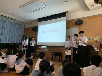 1年生の3学期に実施した「フィールドワーク・プレゼン大会」に引き続き、2年校外学習後のプレゼン大会を今週の3日(月)と5日(水)に実施しました。2年学年だよりにもあったように、各班が協力して良い発表をしようという意気込みで頑張ってくれました。代表班による発表は予選のときよりもレベルアップし、クラスの代表であるという誇りさえ感じられたということです。