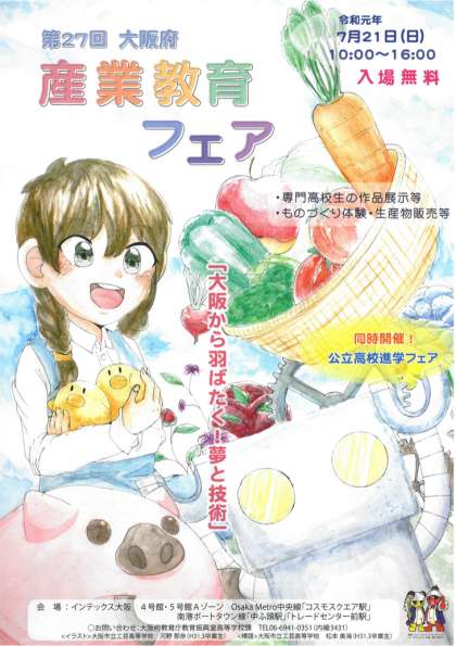 毎年、高校生の作品展示やものづくり体験、生産物販売等を行う「大阪府産業フェア」と同時に、公立高校進学フェアも開催しています。今年は下記の日程で行われますので、ご案内いたします。