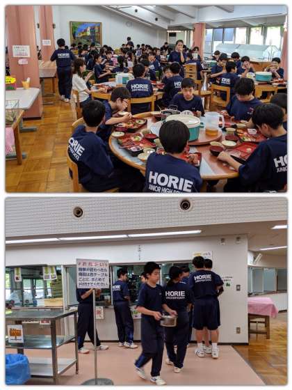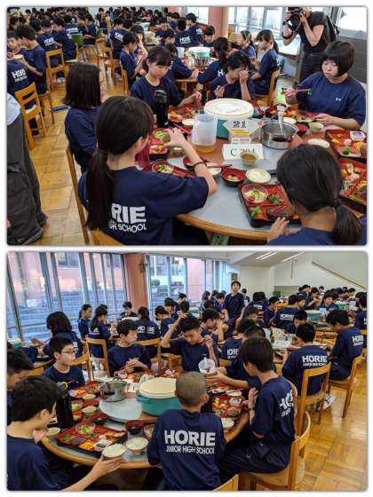 待ちに待った夕食です。オリエンテーリングでお腹ペコペコ。どの班もいっぱいお替りしていました。
