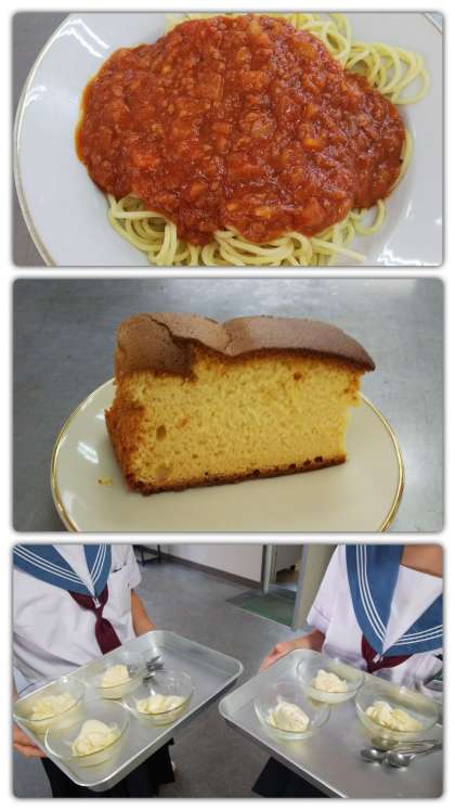 夏休みの部活動で家庭科クラブは調理実習をしました。メニューは次のとおりです。