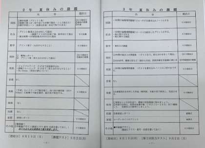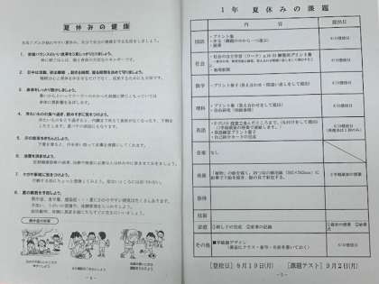 また、夏休みの宿題の提出日でもあるので、夏休みのしおりでよく確認して、忘れ物がないように登校しましょう。まだ完成できていないものは、土日で何とか努力してみよう。