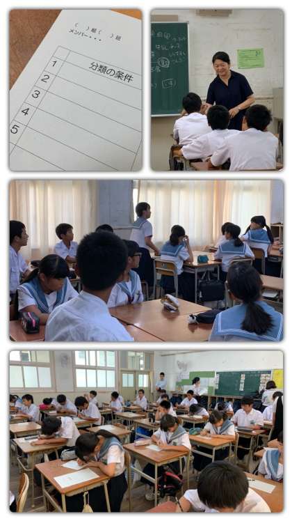 授業内容は、いろんな食品を6つに分ける学習です。初めは分からなかった人も、様々なヒントをもらったり、班で考えたりして、6つに分類することができました。また、栄養をバランスよく摂取するには、どのような方法があるのか、どうしたらいいのかを考えました。教科書にも載ってないので自分で考えなくてはなりません。また、今学習していることが、生活にも健康にも直結していることだなぁと思いました。他の食品についても興味を持って分けてみてください。