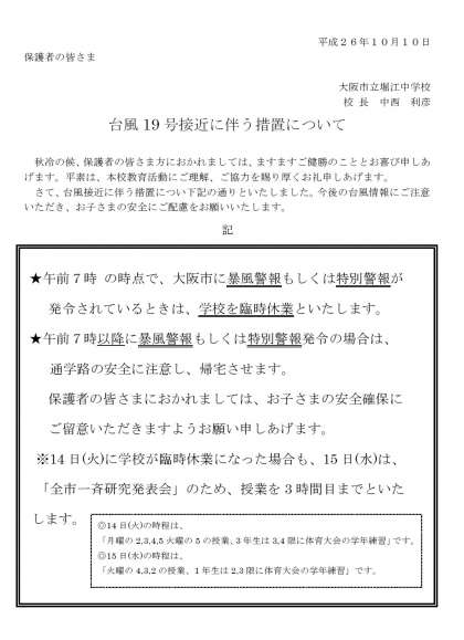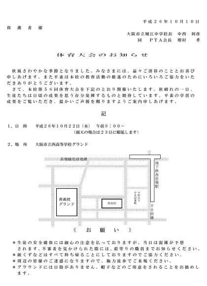 台風接近にともなう措置のお知らせ、と体育大会のおしらせです。
