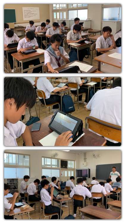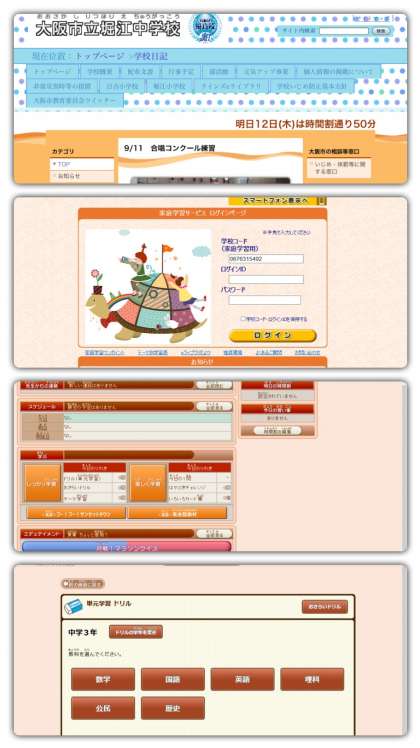 堀江中学校のホームページのトップページから入ってもらうとスムーズにできると思います。下記に入り方を画面で出しますので、チャレンジしてください。全校生徒の皆さん、どんどん使ってみてください。