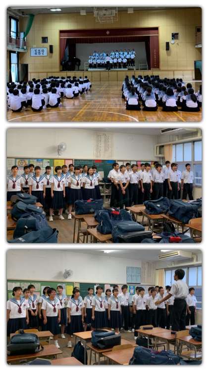 本日は体育館で1年生の合唱コンクールリハーサルを行いました。教室では響いているようでも体育館での響きは違うなあと感じたことでしょう。体育館の舞台から後ろの壁まで歌声がしっかり届くように、体感した違いを生かして、本番の演奏に臨んでもらいたい思います。