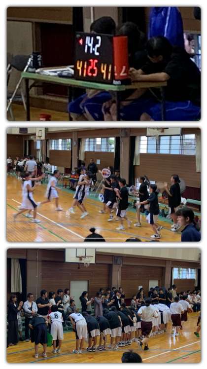 9月21日(土)女子バスケットボール部秋季大会の予選5回戦が三国中学校で行われました。堀江中学校の対戦相手は強豪校の蒲生中。点の取り合いで接戦が続いたり、少し点差が開いたりしましたが、最終的には同点で延長戦になりました。手に汗握る緊張感が続く中、堀江中学校の粘りで勝利し、大阪市ベスト4に入りました。