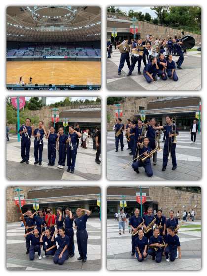 行進しながら演奏し、さらに様々な体形に移動したり、隊列を組んでマーチングする様子は、観客を魅了しました。一人一人が異なる動きをし、それが少しでも間違ってしまうとぶつかり合って大きな事故につながる恐れもあります。それだけに、練習にも気合が入り、部員たちが一致団結して大会に臨みました。結果は銀賞でしたが、やり切った感は充分にうかがわれました。
