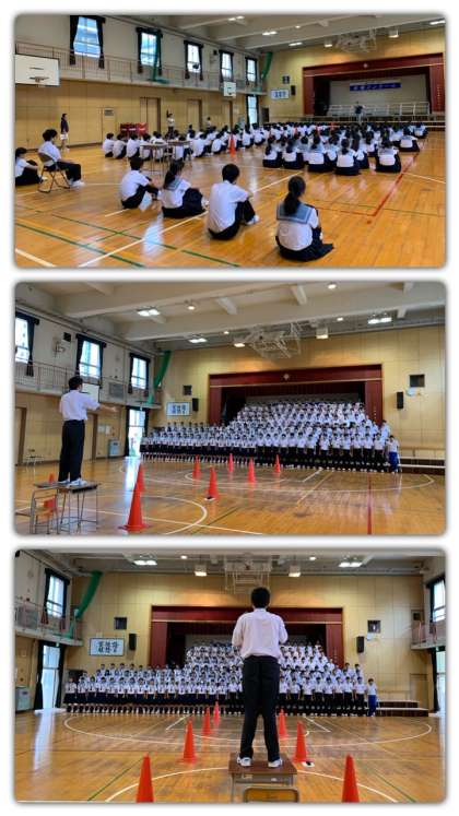 いよいよ明日9月25日は、学年別の合唱コンクールです。3年生は体育館で学年合唱の最終リハーサルを行いました。入退場を含め通し稽古をしました。頑張ったことがきっと明日は実ることと思います。みんなで一致団結して、持てる力を全て発揮しよう!