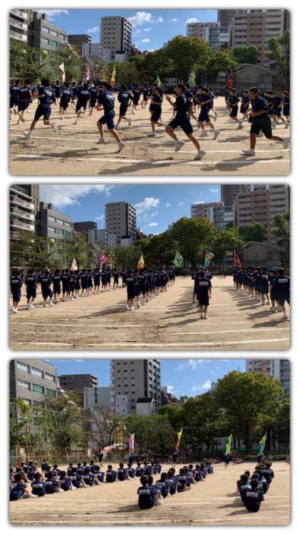 10月4日(金) 1限目、例年の10月とは思えないほどの暑さの中、第2回目の1年生の学年練習をしました。まず、体育委員が中心になって、各種目の招集の練習を行いました。体育委員の呼びかけがなくても、自分で動いて素早く並べるように一人一人が意識を持つことが大切になってきます。