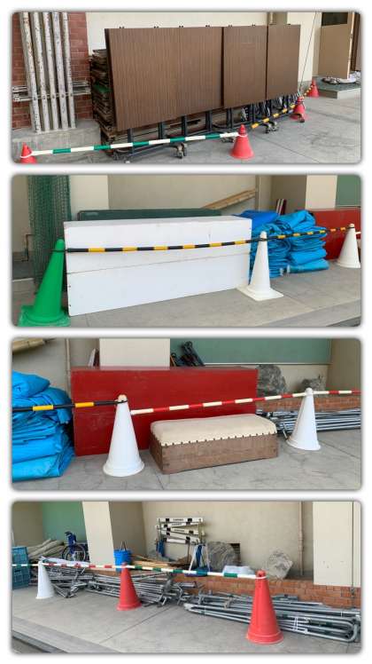 来週15日(火)の体育大会予行、16日(水)の体育大会に向けて、明日は1・2限目に全体練習、5限後は物品の運搬が行われます。昨日から体育の先生を中心に、部活動の生徒たちによって多くの荷物を出してまとめてくれました。明日は、地域の塩濱さんのトラックに全て積み込み、西高で積み下ろし作業があります。みんなで力を合わせて運搬作業をお願いします。