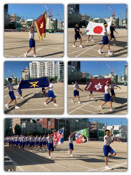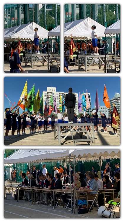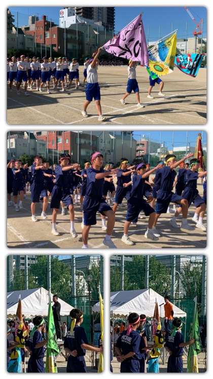 10月16日(水)雲一つない秋晴れの空の下、大阪市立堀江中学校第61回体育大会が行われました。早朝から多くの来賓の皆様、保護者・PTAの方々がお越しになり、本番独特の緊張感に包まれました。生徒たちの入場行進や代表あいさつ、選手宣誓など、今まで何度も練習した成果が見られ、爽やかな幕開けとなりました。