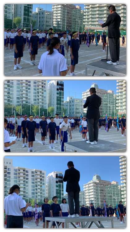 地域の多くの人々の堀江中学校に対する思いや期待が、この体育大会でも十分に感じることができました。堀江中学校の生徒の活躍を楽しみに来られるご来賓の皆さんもたくさんおられるのです。生徒の皆さん一人一人がますます輝けるよう、いろんなことにチャレンジしましょう!これからも堀江中学校をよろしくお願い申しあげます。