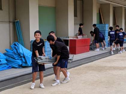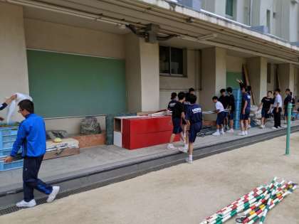 昨日学校まで運び入れた体育大会の用具を所定の場所までの後片付けを部活動の生徒たちが行ってくれました。最後までご苦労様でした。