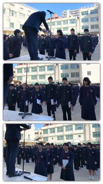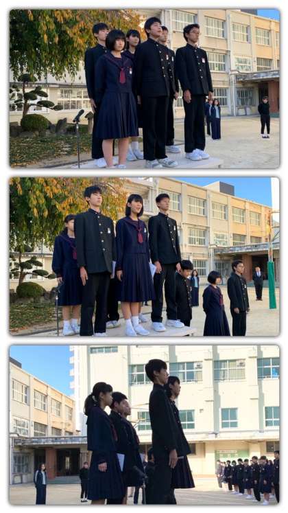 11月を一つの節目と考え、3年生はまず自分の進路選択を主体的に行い、2年生はこれからの堀江中学校の中心的な立場で学校全体を先導し、1年生は2年生とともに協力体制を固め、堀江中学校の良き伝統をさらに受け継いでいってもらいたいと思っています。