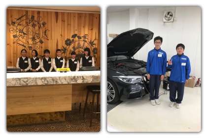ローソンでは制服で前出し作業(商品を見やすいように前に出す作業)、洋服の青山ではスーツ姿でにこやかに、スイスホテル南海ではフロントでいらっしゃいませ?、タナカユキ(株)では大好きなBMWとともにハイテンションに!など、楽しく活動しています。