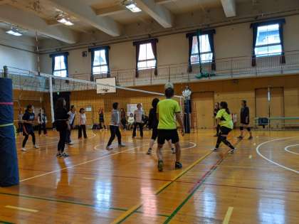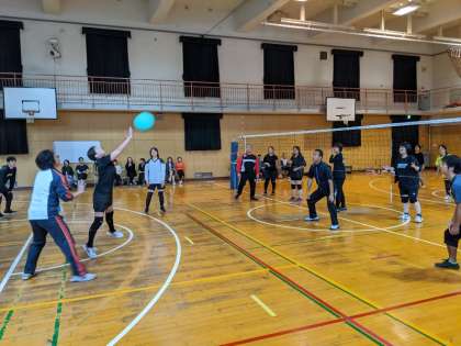 11月24日(日)PTA主催による「学年対抗スポーツ大会」を実施しました。今年も各学年たくさんの保護者の参加があり、教員チームも参加して楽しくソフトバレーボールを行いました。