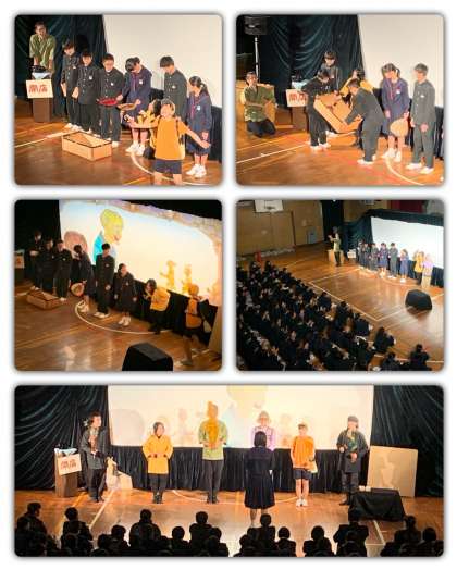 影絵劇は、悪い妖怪に騙され妖怪の世界に入ってしまった主人公ユウトが、鬼太郎と出会うことで人間的な心を取り戻し、困難を乗り越え、無事に人間の世界に帰ってきたというお話でした。鬼太郎の温かく友達思いのやさしい妖怪の心にユウト自身が気づき、自ら鬼太郎を助けようとしたその心によって、自分が悪い妖怪(心)から救われたのです。目には見えない心の大切さを改めて感じ取ることができました。