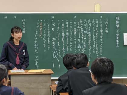本日放課後に後期第2回中央専門委員会を行いました。整備委員会では11月の反省事項を各学年から出し合い、12月の目標を話し合い決定しました。