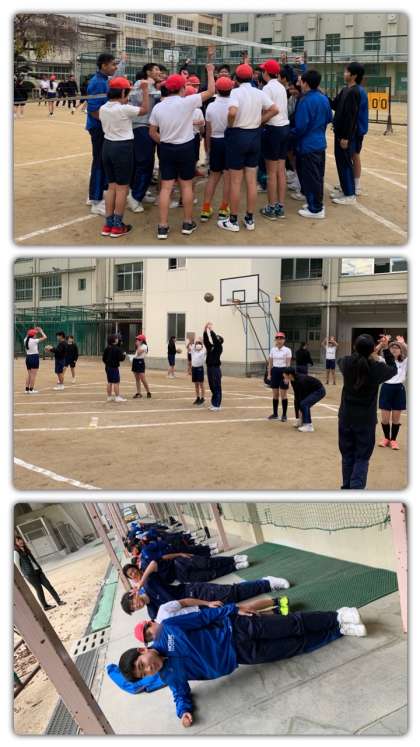 バレーボール部とバスケットボール部は交替で体育館練習と運動場練習を行います。