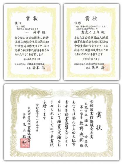 1年 牧野 央拓 《学校図書館協議会会長賞》