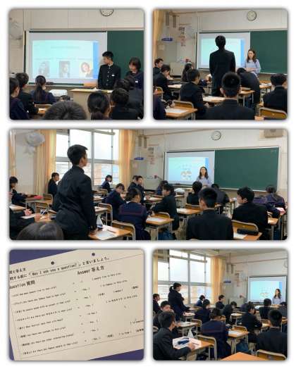 12月10日(火)5限目、2年2組で英語科の北村先生による研究授業が公開されました。学習の内容は、Unit6までに学んだ表現を活用し、一つの都道府県を選んで4文字以上の英文で紹介文や画像を作成してプレゼンテーションし、発表を聞いて質問したり答えたりしながら、友達と交流する学習でした。
