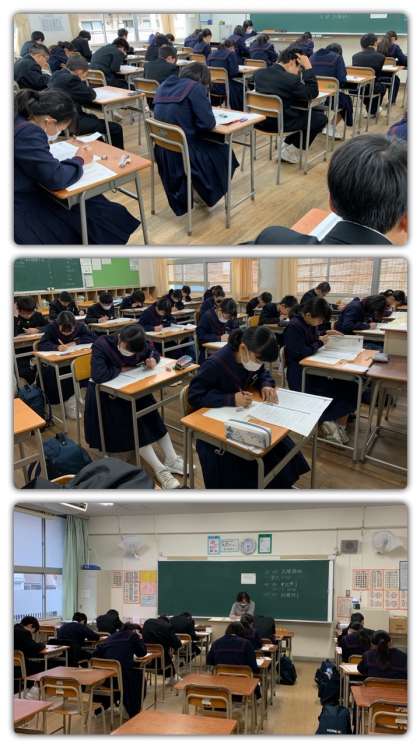 1月24日(金) 放課後、希望者による実用英語技能検定を実施しました。1年から3年まで総勢148名の生徒が受検しました。どの級でも真剣に取り組んでいました。第一次試験の結果は2月10日(月)以降、Webでも確認できます。面接形式のスピーキングによる二次試験(3級以上)は2月23日(日)に各自が希望した会場で受検することになります。また、こちらも頑張ってください。今回は学校で初めて英検を実施し、多くの生徒がチャレンジしたことが、とても良かったと思います。