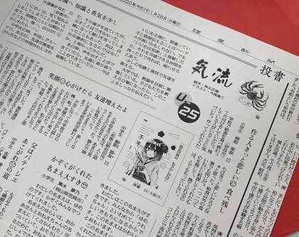 「気流」は原則25歳までの若者が対象のコーナーで毎週火曜日に掲載されるものです。イラストの他、川柳・随筆(エッセー)なども投稿できます。思いついたこと、普段から考えていること等、文や絵の作品にチャレンジしてみませんか。