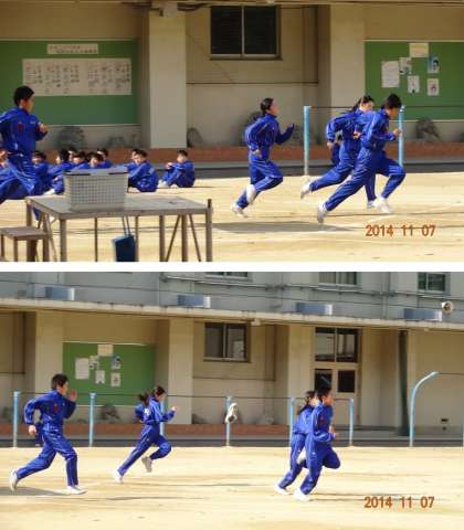 グランドが狭くゴール地点に余裕がないので、最後まで全力で走りきれない問題もありますが、安全面に配慮して実施しています。