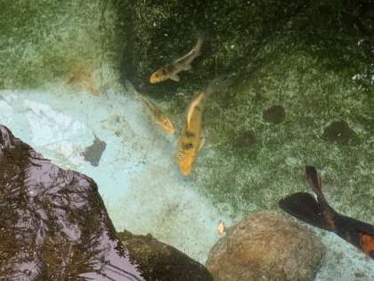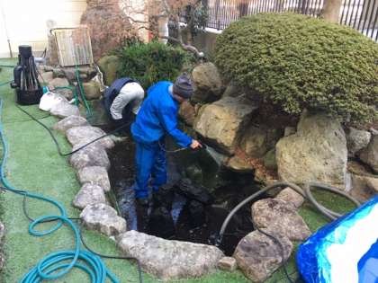 昨日、業者の方に入っていただき、池の清掃を行っていただきました。濁っていた池の水が澄み、色鮮やかな美しい鯉が勢いよく泳いでいる様子がはっきりと見られるようになりました。