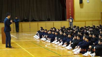 1年生は、6限に外部から講師をお招きし、福祉についてのお話をうかがい、車イスの操作・介助について学習しました。