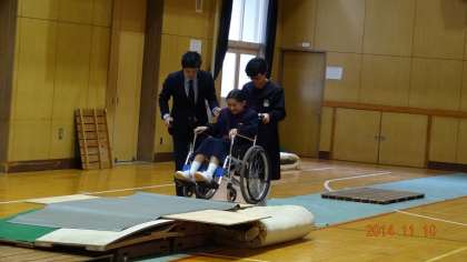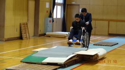 明日は、校外に出て車イスの体験を行います。