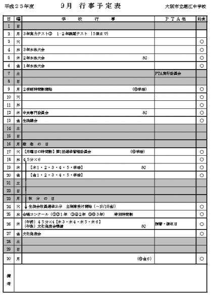 ※登校日に生徒に配布する行事予定には、9月2日にも「○が」入っていますが間違いです。