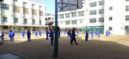 1年生の体育はバレーボールをしています。