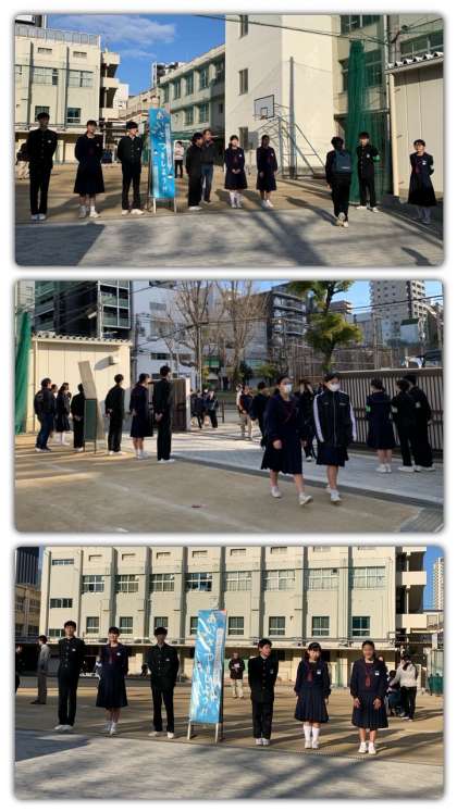 2月28日(金)明日からの学校休業を目前にして、いつも通り、生徒会役員や先生たちが通用門で登校する生徒の皆さんを迎えました。昨日の突然の報道により、保護者の皆さんも含め驚かれたことと思いますが、3年生は卒業式まで今日が最後ということで、早目に登校し友達としゃっべったり笑ったりして最後の中学校生活を楽しんでいました。登校する生徒たちも、普段通り落ち着いた状況で一日が始まりました。