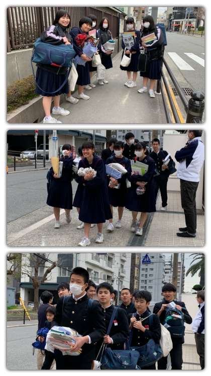 たくさんの荷物を持って学校を後にしました。3年生が全員揃うのは、卒業式の当日になります。3月13日日(金)は午前9時に運動場集合です。元気に安全に過ごしてください。