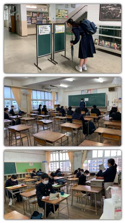 本日3月4日(水) 3年生は公立一般選抜に向けて出願しました。各教室に集合し、諸注意を受けた後、願書を再度点検して、学校ごとにまとまって29校に向けて出発しました。受験票は大切に保管してください。