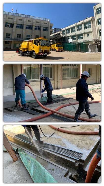 3月6日(金) 専門業者の方に入っていただき、グランドの側溝に溜まりに溜まった泥や砂をきれいに清掃していただきました。4tトラック2台で来てもらいましたが、満タンになって帰られました。本当にありがとうございました。清掃時には定期的に砂を履いてきれいにしておいた方がいいですね。