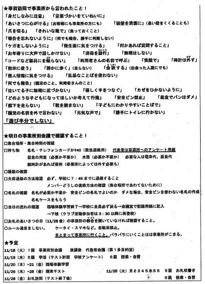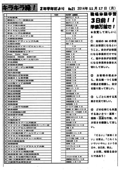 いよいよ今週の木曜日、金曜日と2日間、2年生は職場体験学習をします。