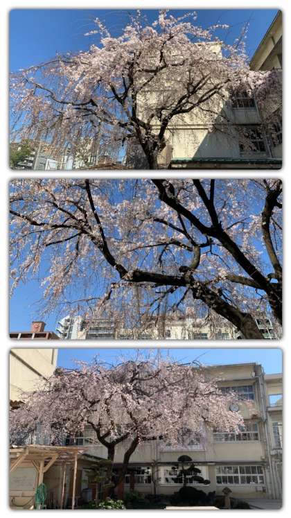 桜が見事に満開になりました。青空に映え、子どもたちの登校を歓迎しているようです。