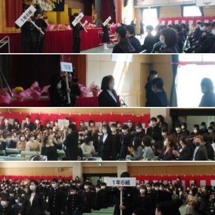 本日、本校の「第63回入学式」を行いました。クラス分けを見て新入生の皆さんは、「ワアー、きゃー」と友だち同士で笑顔を見せていました。