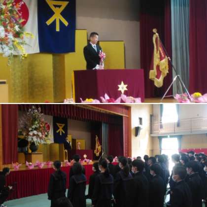 校長先生から、お祝いの言葉と3年間の中学校生活での目指す目標を示されました。