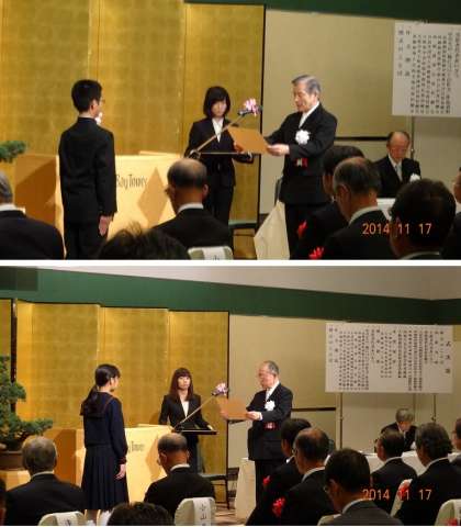 4人の生徒がそれぞれ、「西納税協会長賞、西納税貯蓄組合連合会長賞、西税務署長賞、近畿納税貯蓄組合総連合会長賞」で表彰されました。