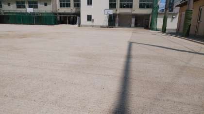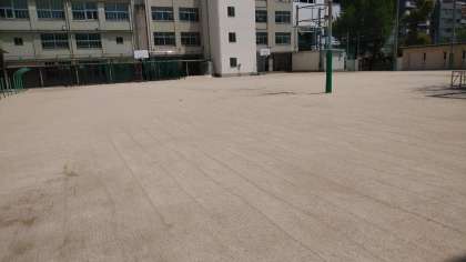 現在学校は、最小規模の教員数で日々業務を行っています。その中で、これまでの雨などでグラウンドがデコボコとなっていた状態を、先生方はレーキ(いわゆるトンボ)を手に、時間をかけて、丁寧に整地を行いました。