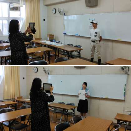 登校日の間に、2,3年生の先輩たちは、1年生のための「部活動紹介動画」をつくっていました。