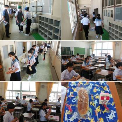 給食については、牛乳と個包装したパンのみの実施をしました。