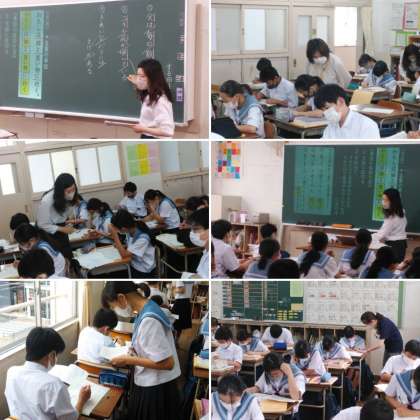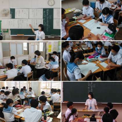 先日の指導主事先生のご指導を経て、今日2人の国語科の先生は、ICT機器の活用や授業展開を工夫して、理解のしやすさの追求や生徒が自ら意見を出し合って、その考えを共有する仕掛けなどを、前回とは違った取り組みをされました。