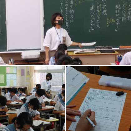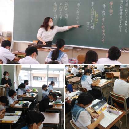 1年生も、2年生も現在「古典分野」を学習しており、1年6組では「竹取物語」、2年3組では、清少納言「枕草子」を学んでいました。
