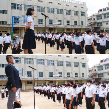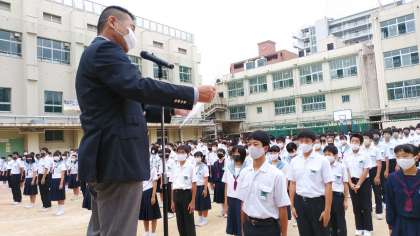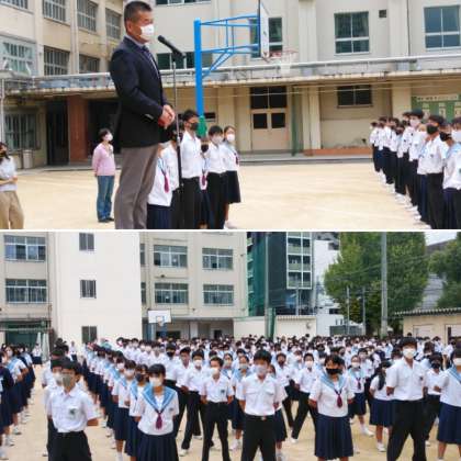 校長先生からご講話をいただき、先日開催された、陸上部の通信大会(大阪大会)の賞状伝達が行われました。