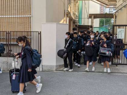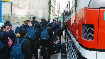 3年生は各自自分の荷物をバスのトランクに詰め込みます。