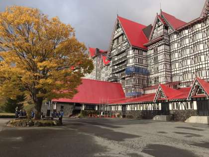 写真は、宿泊しています「ホテルグリーンプラザ白馬」です。エレガントな感じが漂います。